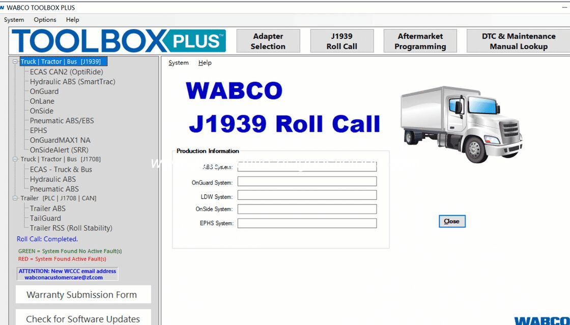 ABCO 툴박스 플러스ABS, 안정성 제어 및 충돌 완화 시스템을 포함한 WABCO의 포괄적인 제품 라인업을 지원하도록 설계된 고급 진단 소프트웨어입니다.기술자들이 진단할 수 있게 해줍니다., 시스템 테스트 및 ECU 프로그래밍을 다양한 지원 인터페이스를 사용하여 효율적으로 수행합니다.