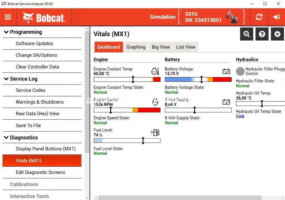 진단 도구 Bobcat는 프로그래밍, 진단, 서비스 로그 및 캘리브레이션을 위해 고안되었습니다. 소프트웨어 업데이트 변경 SN/선택 ✅ 컨트롤러 데이터를 맑게 ∙ 드라이브 펌프 캘리브레이션 상태 패널 원격 제어 시스템 생명체, 진단 화면 편집 상호작용 테스트 등